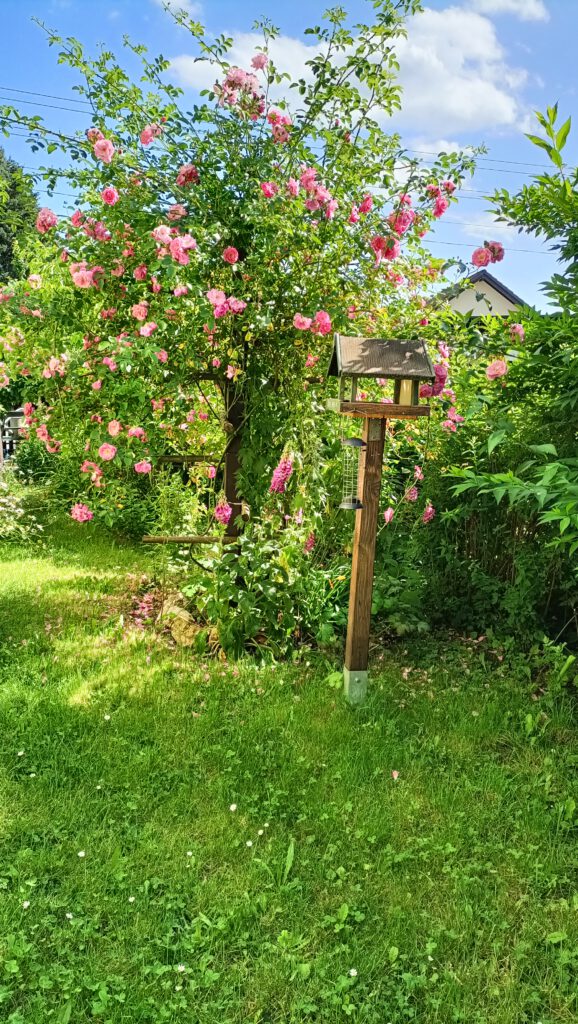 Wo die Vorfahren noch Futter für das Vieh angebaut haben, dürfen nun Sträucher, Rosen, Blumen und Kräuter üppig wachsen.